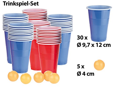 Mit gleich 60 Bechern und 5 Bällen spielen Sie sogar mehrere Partien gleichzeitig oder wetteifern in großen Teams gegeneinander. Die stabilen Becher überstehen selbst wilde Partys und Festival-Wochenenden.