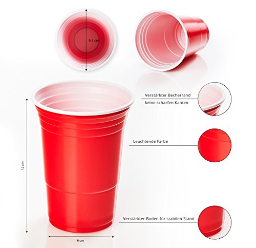 Lumaland Partybecher 100 Stück 16 oz Beer Pong Trinkbecher extra stark rot